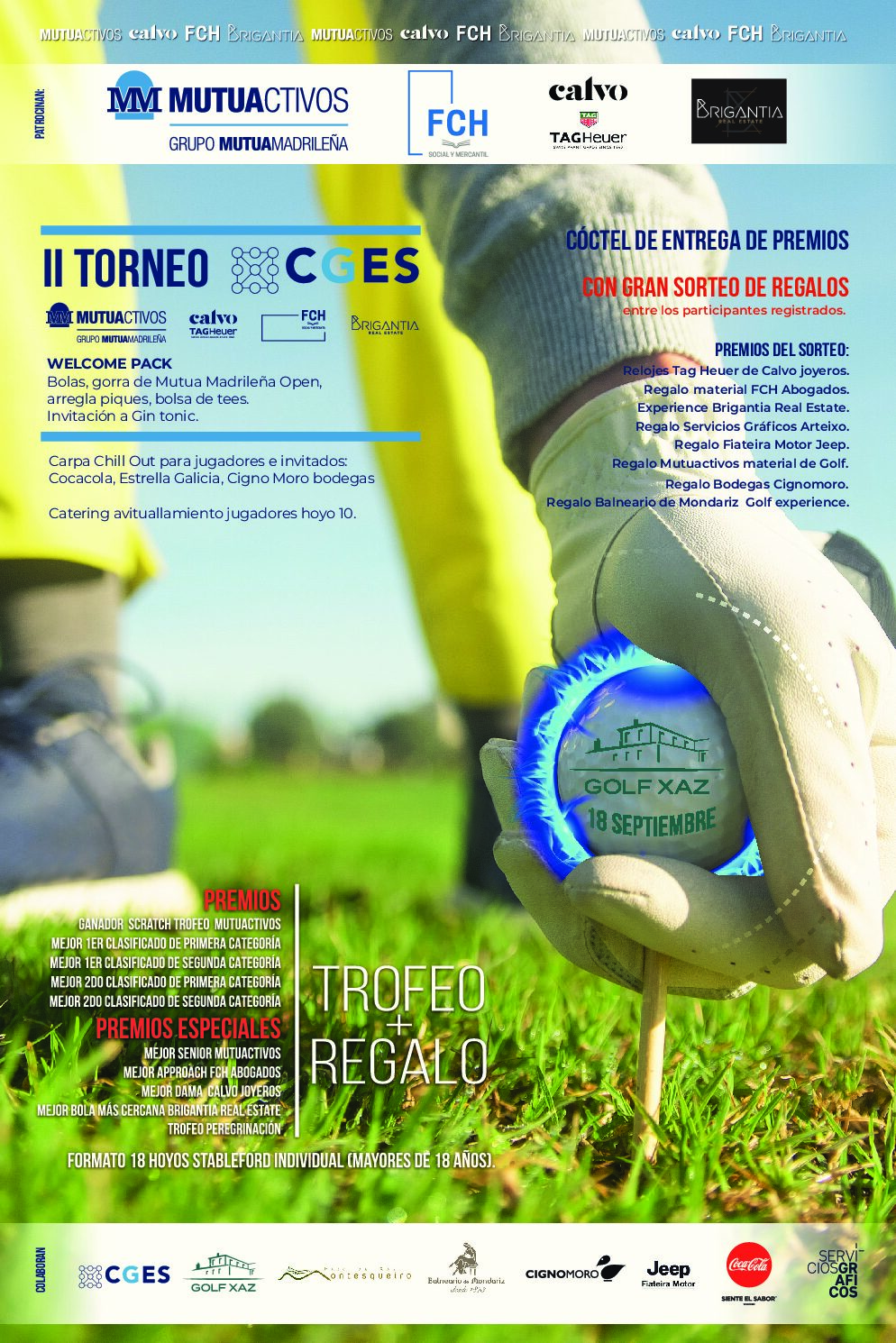 Desde el CGES nos han hecho llegar unas actualizaciones en relación al II TORNEO DE GOLF CGES 2021 que se ha organizado entre los Colegios Profesionales que lo formamos, el próximo 18 de septiembre en el Campo de Golf Xaz, ubicado en Oleiros.