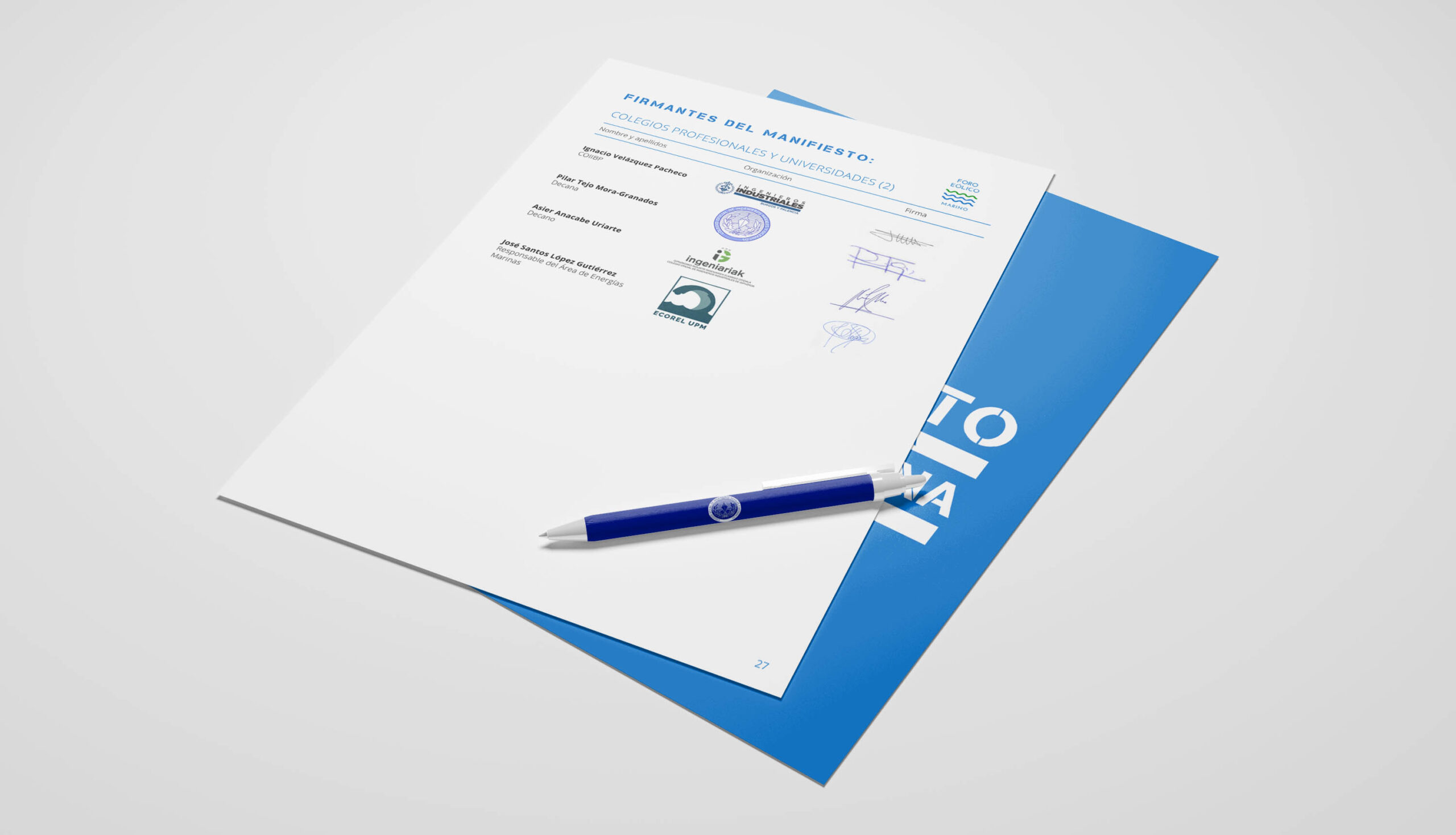 El “Manifiesto por el desarrollo de la eólica marina en España” con más de 170 firmantes que representan a los principales actores del desarrollo de la eólica marina en España.