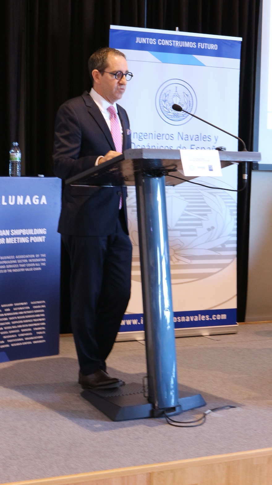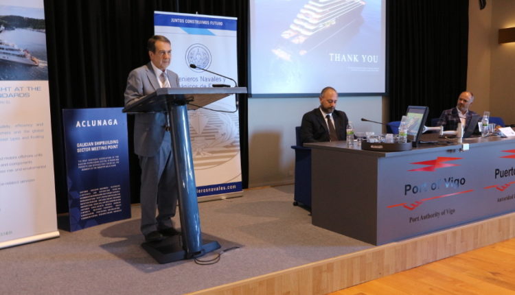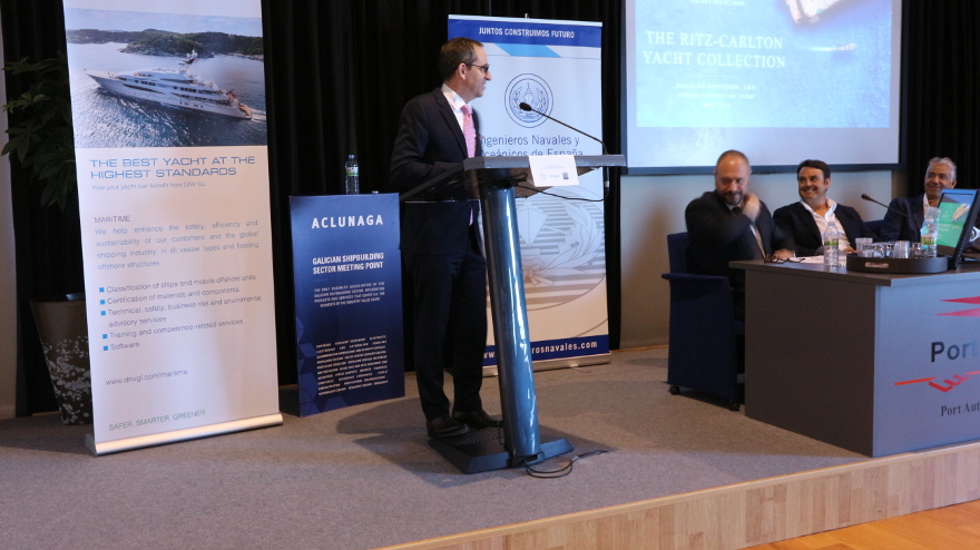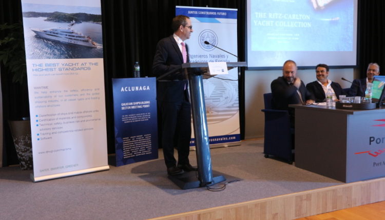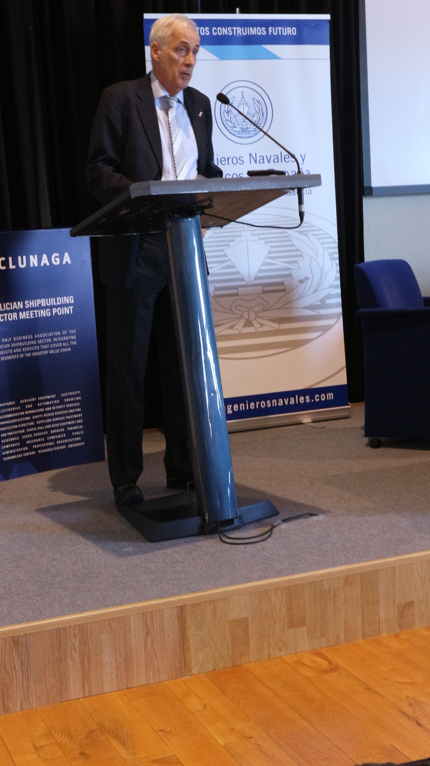 “Cruceros de lujo, concepto Galicia”, Oscar Gómez, gerente de Aclunaga. Durante su intervención destacó que Galicia está preparada para afrontar este tipo de proyectos y explicó cómo Galicia ha sabido sumarse al mercado de la construcción de buques de cruceros de lujo en el que hay mucha carga de trabajo.