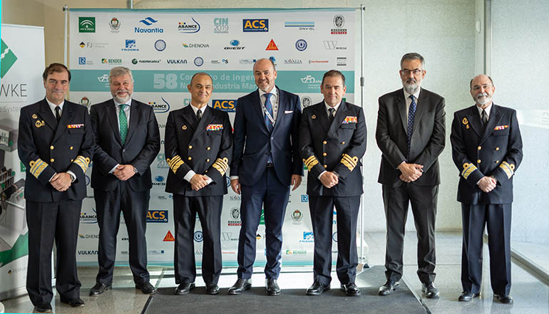 En un buque de guerra actual, un cincuenta por ciento de los requisitos están relacionados con los sistemas embarcados, puntualizó el orador, los sistemas de combate, de navegación, de control de plataforma… Los sistemas representan una parte vital del buque y el segmento de negocio relacionado con estos sistemas es además, de alto valor añadido y en crecimiento. Son un vehículo para la transferencia de tecnología, necesaria en el mercado internacional hoy en día. Convirtiéndose en una pieza clave para el sector naval militar. Es en esta disciplina, en el desarrollo de este tipo de tecnología, en el que San Fernando ha desarrollado un papel clave. El Sr. Santamaría nos sitúa en los inicios de la introducción de los sistemas en los buques, sustituyendo tecnología obsoleta, allá por los años setenta, donde aún se utilizaban actuadores puramente mecánicos, para el tiro de la artillería a bordo de los buques de guerra de la época y, cuenta anecdóticamente como la implementación de estos sistemas permitió la reducción de espacios a bordo, así como una mejora en la puntería de la citada artillería. Con todo ello se creó un grupo de ingenieros jóvenes, dedicados al estudio de estos sistemas integrados, a partir de ahí FABA se empezó a involucrar en papeles cada vez más complejos hasta llegar al programa F100. El ponente destacó que actualmente, Navantia Sistemas es la integradora por excelencia de los sistemas de combate de la armada, con participación en todos los buques de nueva generación. Finalmente, hizo una visión de futuro, hablando sobre el avance del sector hacia la industria 4.0, siendo de vital importancia factores como la ciberseguridad, la inteligencia artificial y sus aplicaciones, o los vehículos no tripulados concluyendo con los agradecimientos de todos los participantes en el desarrollo de esta tecnología y de este avance a lo largo de los años.