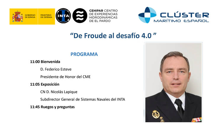 El CME nos invita a su próximo encuentro con la Administración en esta ocasión ofrecido por el INTA-Cehipar impartida por el CN D. Nicolás Lapique, Subdirector General de Sistemas Navales del INTA.